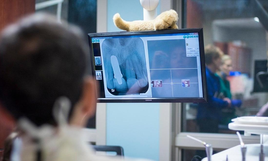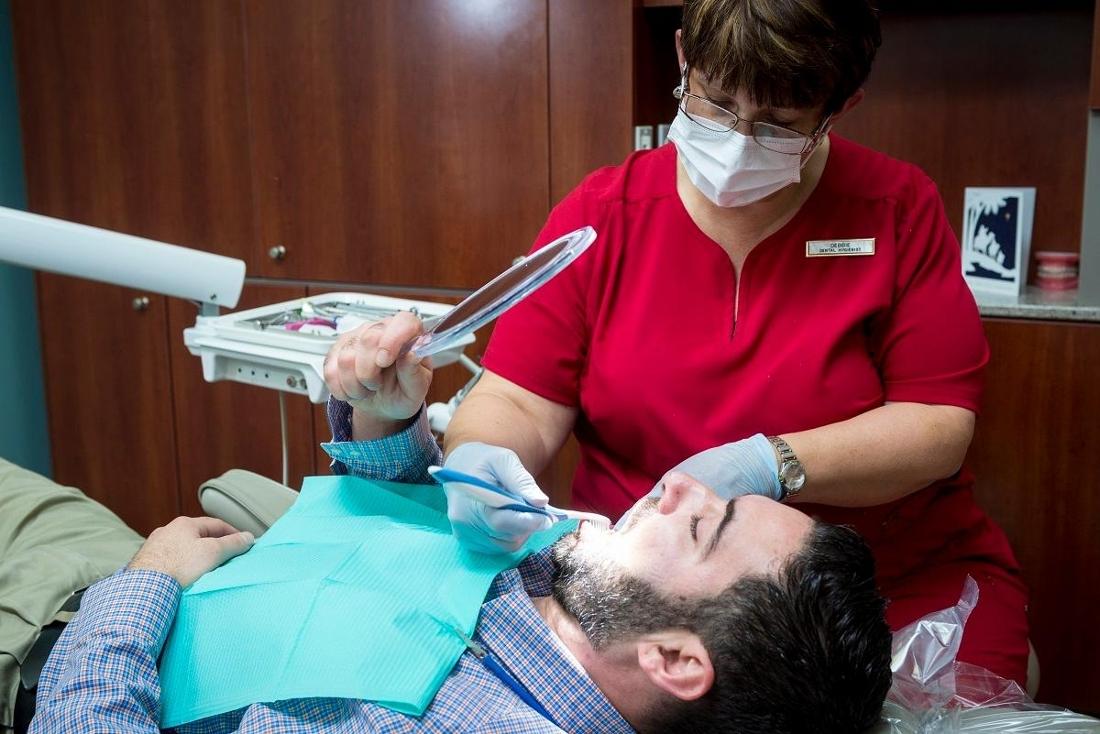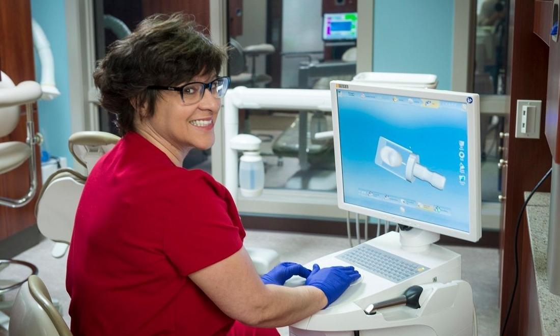 Our chairside assistant, Mary, conducting a design on a CEREC crown