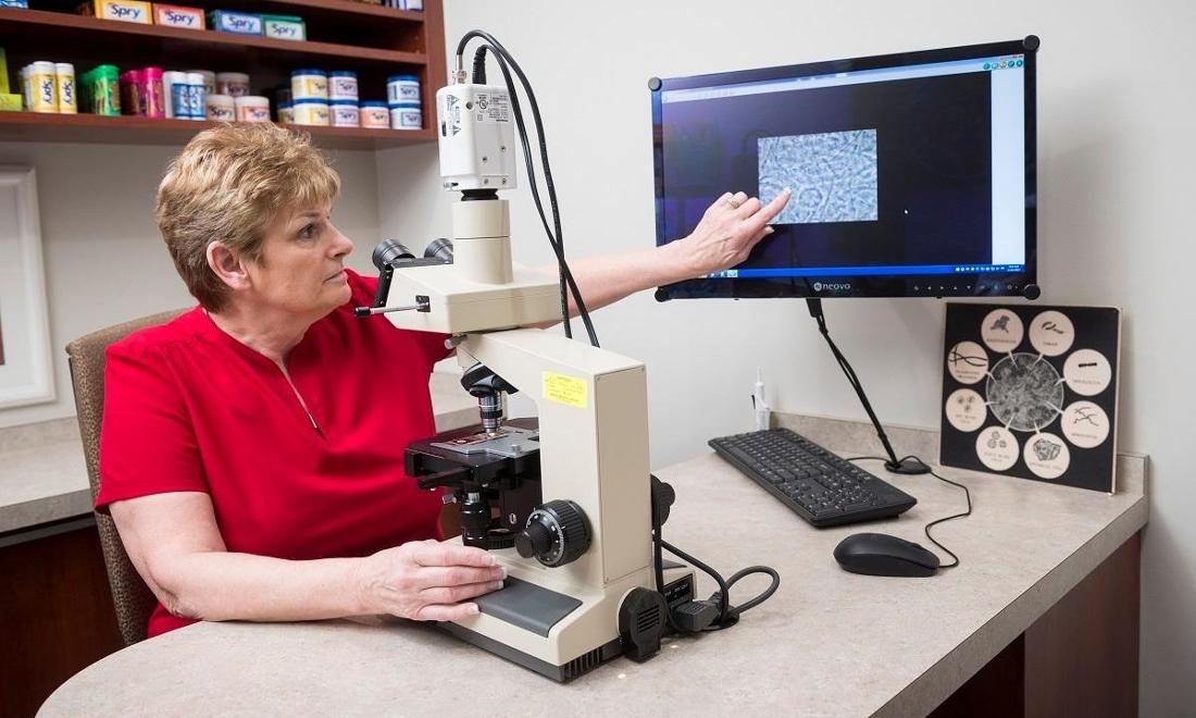 Our Hygiene Assistant, Carrie, analyzing a microscopic image